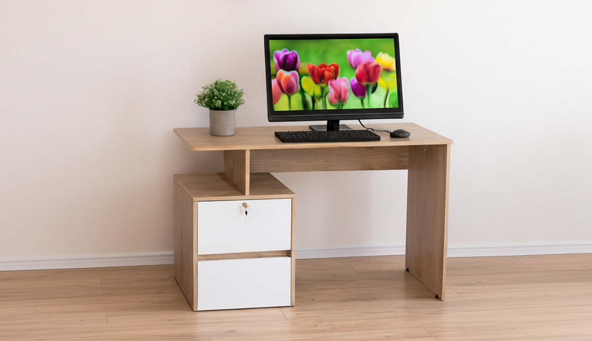 Ya sea que estes trabajando desde casa o estudiando, el escritorio Spasso es para ti. Está diseñado con un compartimento de almacenaje con llave de seguridad para cuidar tus objetos y un orificio para sacar los cables de tu computador o impresora y mantenerlos organizados. Hecho con madera manufacturada con un tono neutro que permite ser combinado con una variedad de estilos.