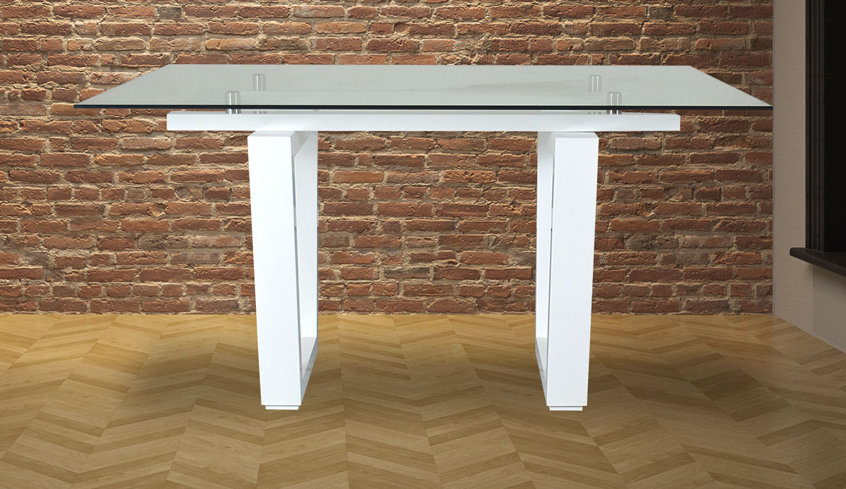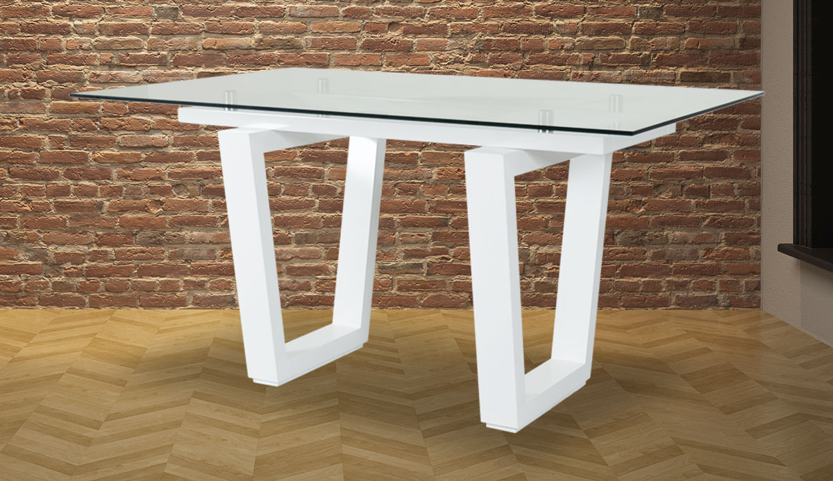 Esta mesa del comedor Menfis llama la atención con su base de madera en forma polígona , mientras que la tapa rectangular de vidrio templado, crean la definición de sofisticación.