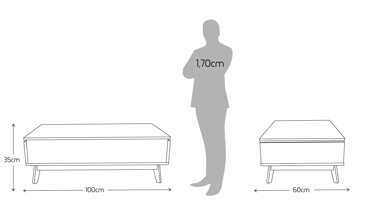 | Medidas estándar fabricadas | Ancho: 60 cm Largo/fondo: 100 cm Alto: 35 cm |