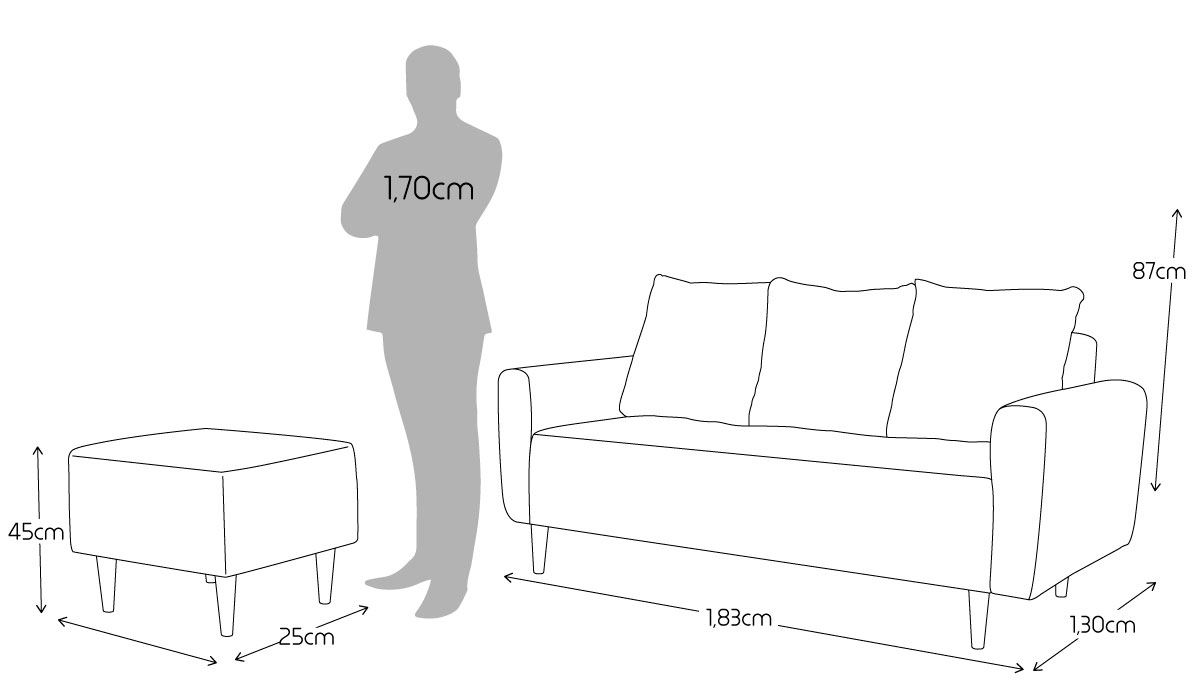 | Medidas estándar fabricadas | Ancho: 183 cm Largo/fondo: 130 cm Alto: 87 cm |